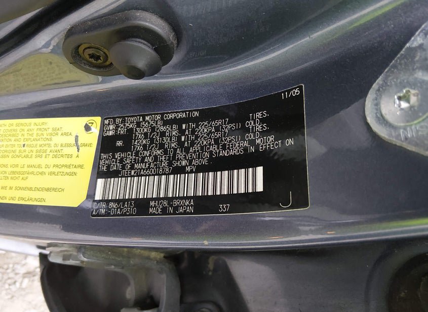 - VIN: JTEEW21A660018787