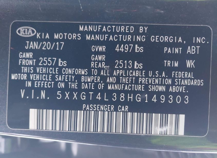 - VIN: 5XXGT4L38HG149303