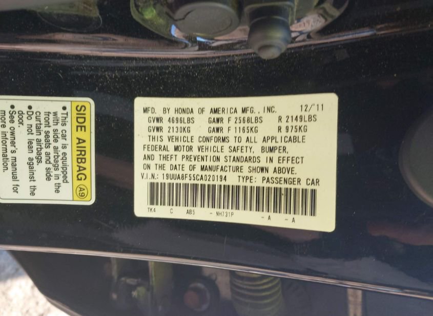 - VIN: 19UUA8F55CA020194