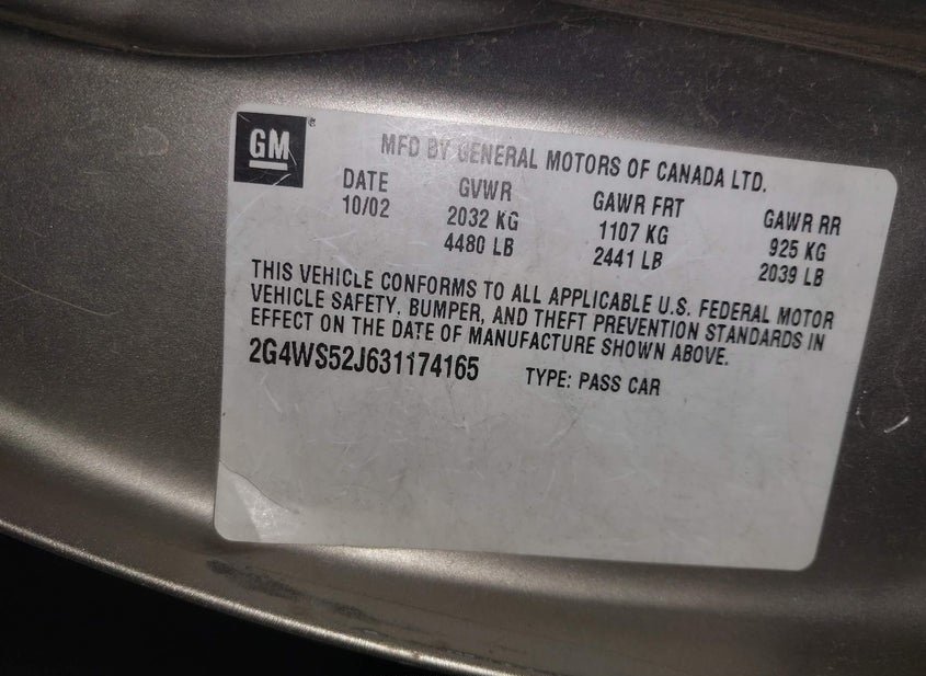 - VIN: 2G4WS52J631174165