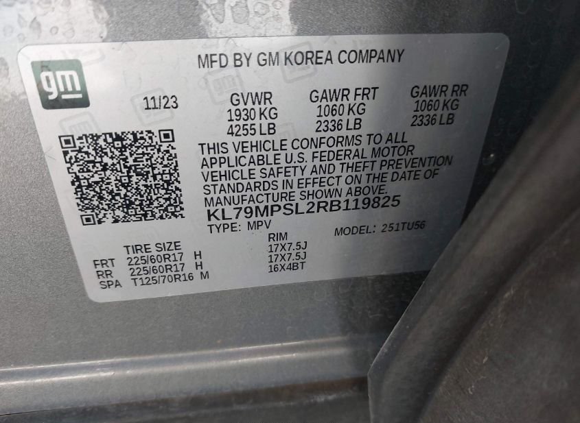 - VIN: KL79MPSL2RB119825