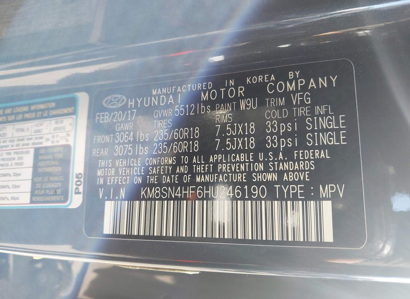 - VIN: KM8SN4HF6HU246190