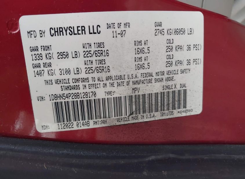 - VIN: 1D8HN54P28B128170