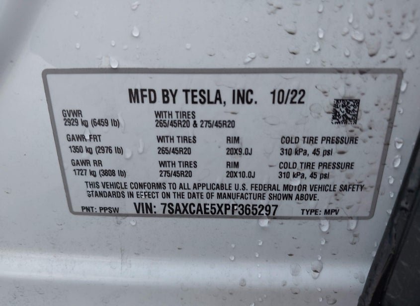 - VIN: 7SAXCAE5XPF365297