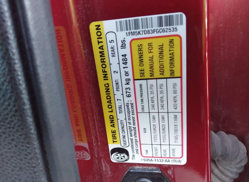 - VIN: 1FM5K7D83FGC62535
