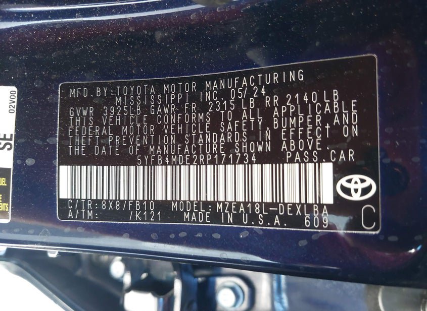 - Название лота: 2024 TOYOTA COROLLA LE