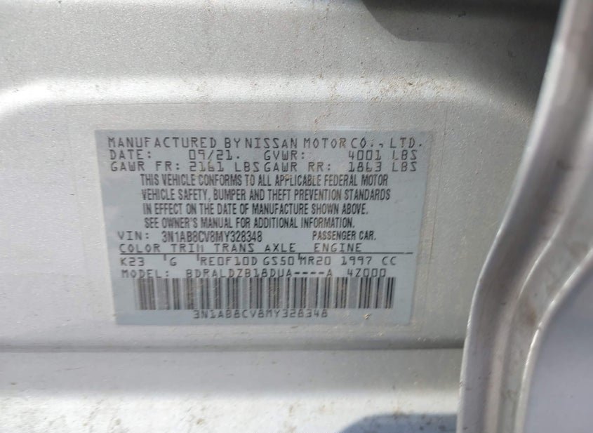 - VIN: 3N1AB8CV8MY328348