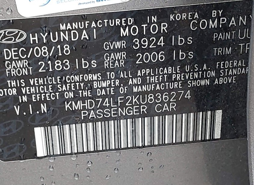 - VIN: KMHD74LF2KU836274
