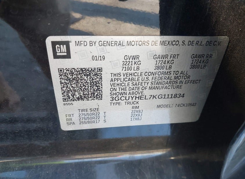 - VIN: 3GCUYHEL7KG111834