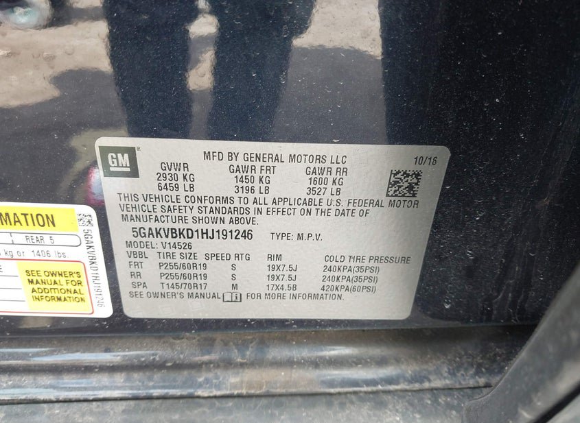 - VIN: 5GAKVBKD1HJ191246