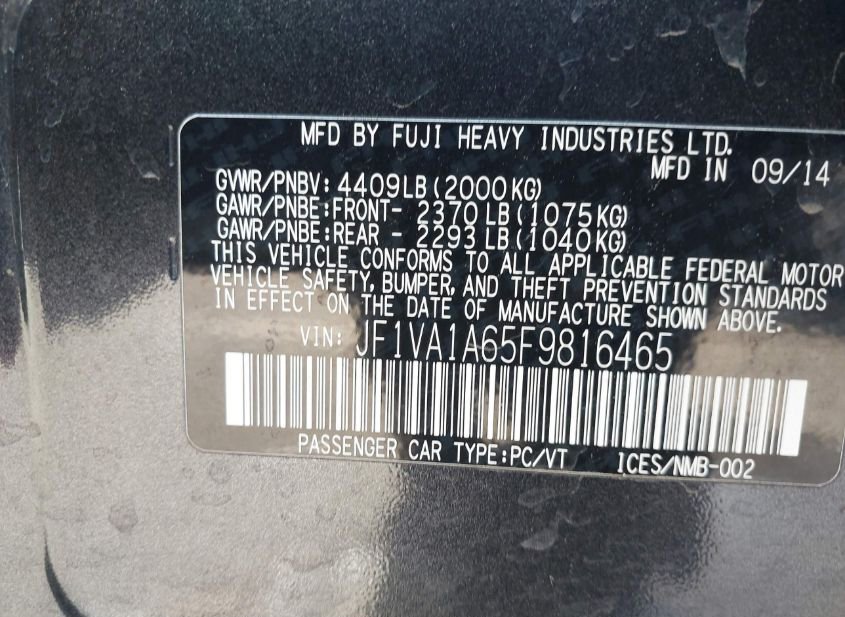 - VIN: JF1VA1A65F9816465