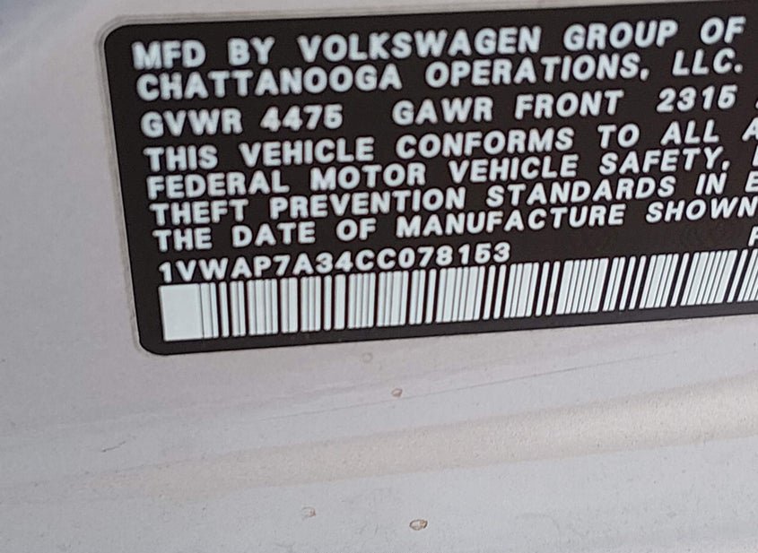 - VIN: 1VWAP7A34CC078153