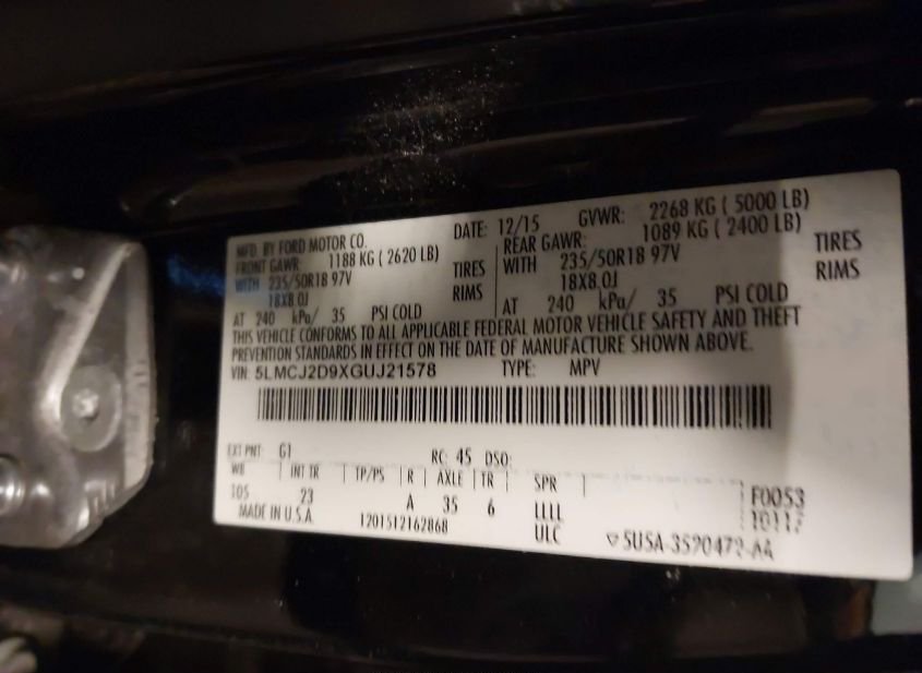 - VIN: 5LMCJ2D9XGUJ21578