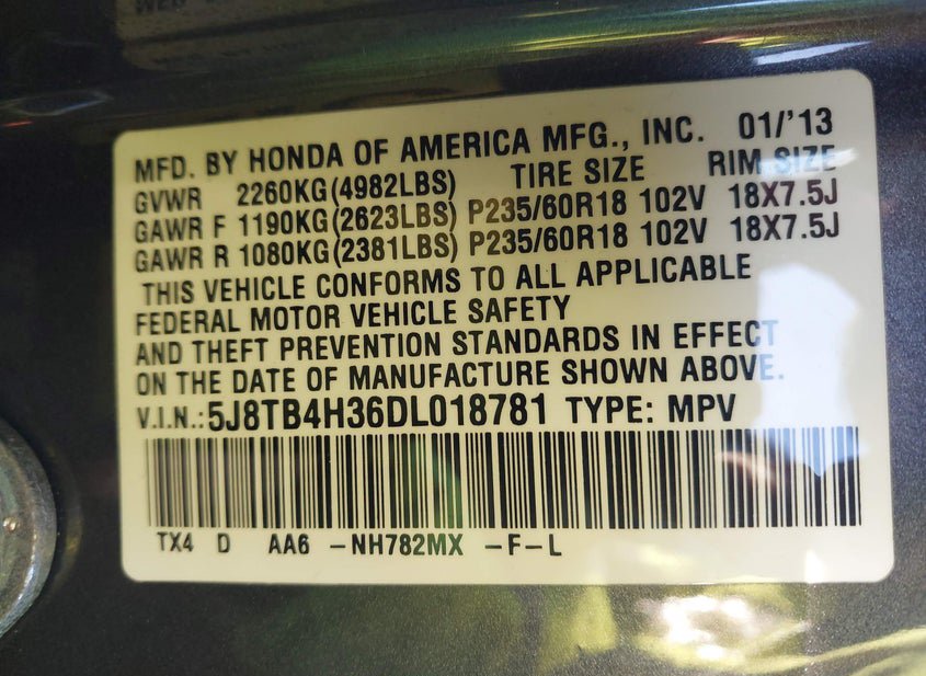 - VIN: 5J8TB4H36DL018781