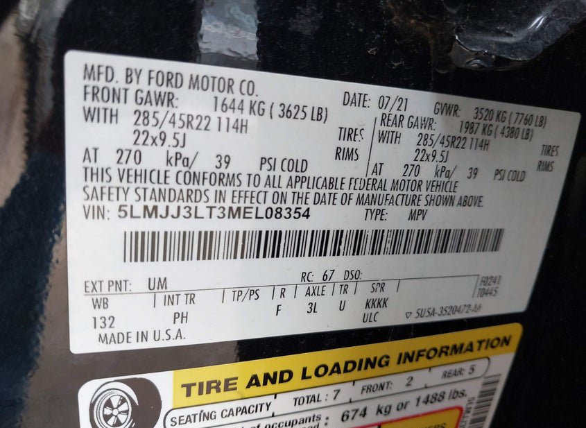 - VIN: 5LMJJ3LT3MEL08354