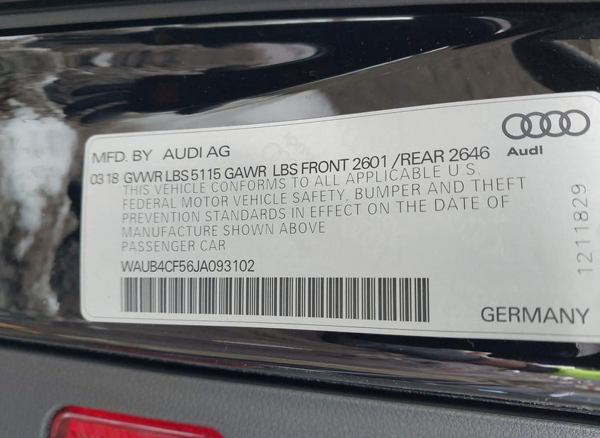 - VIN: WAUB4CF56JA093102
