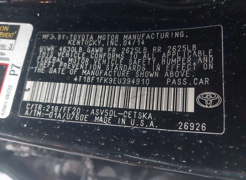 - VIN: 4T1BF1FK9EU394910
