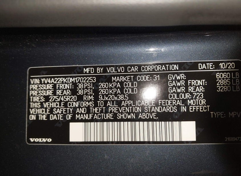 - Название лота: 2021 VOLVO XC90 T6 MOMENTUM 7 PASSENGER