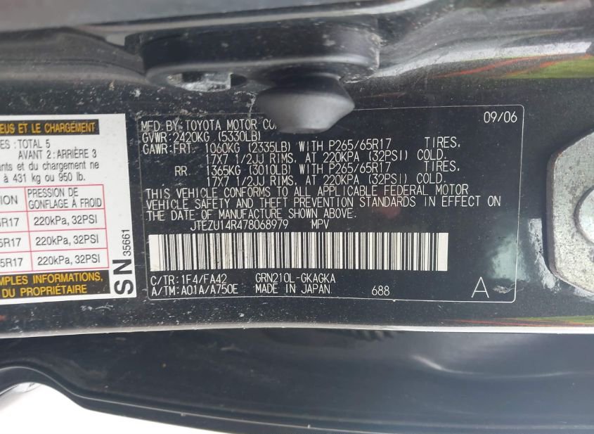 - Название лота: 2007 TOYOTA 4RUNNER SR5 V6