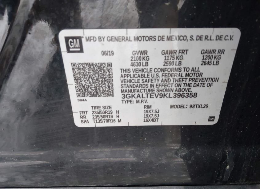 - VIN: 3GKALTEV9KL396358