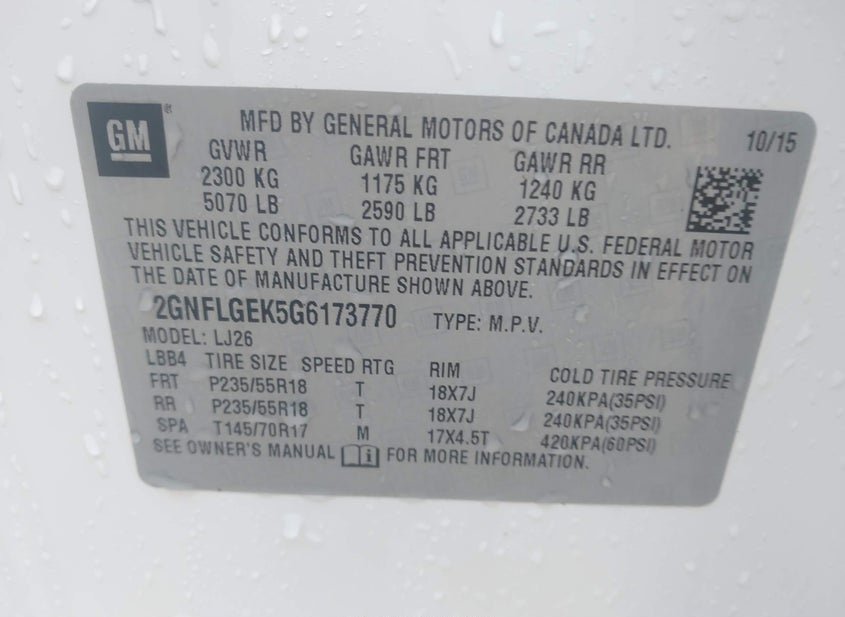 - VIN: 2GNFLGEK5G6173770