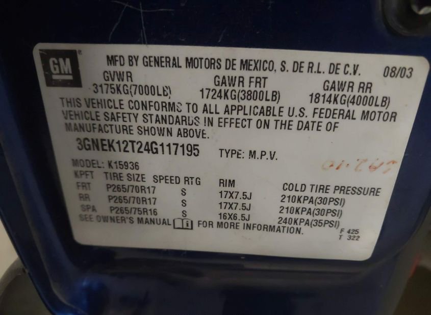 - VIN: 3GNEK12T24G117195
