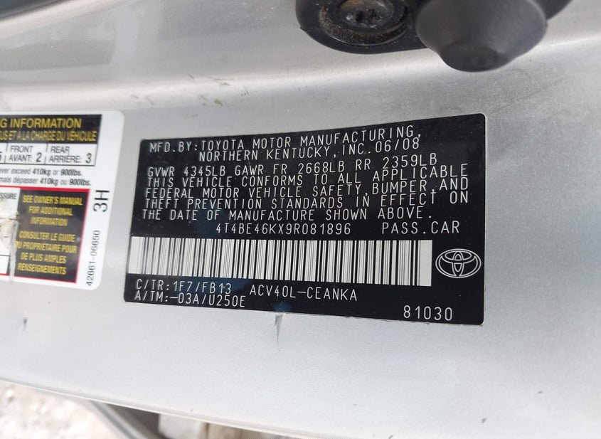 - VIN: 4T4BE46KX9R081896