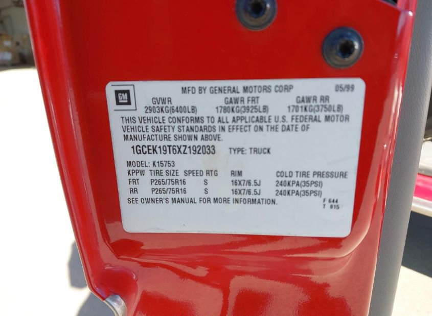 - VIN: 1GCEK19T6XZ192033