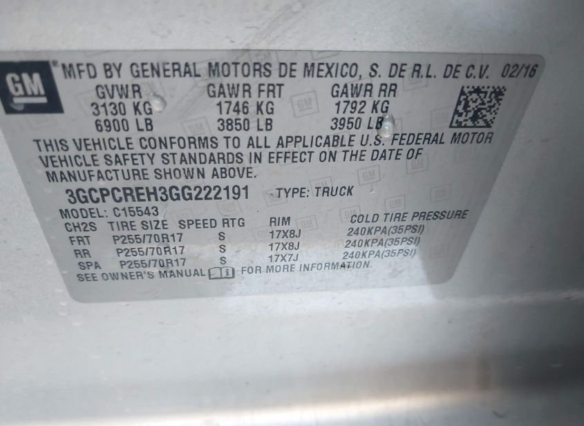- VIN: 3GCPCREH3GG222191
