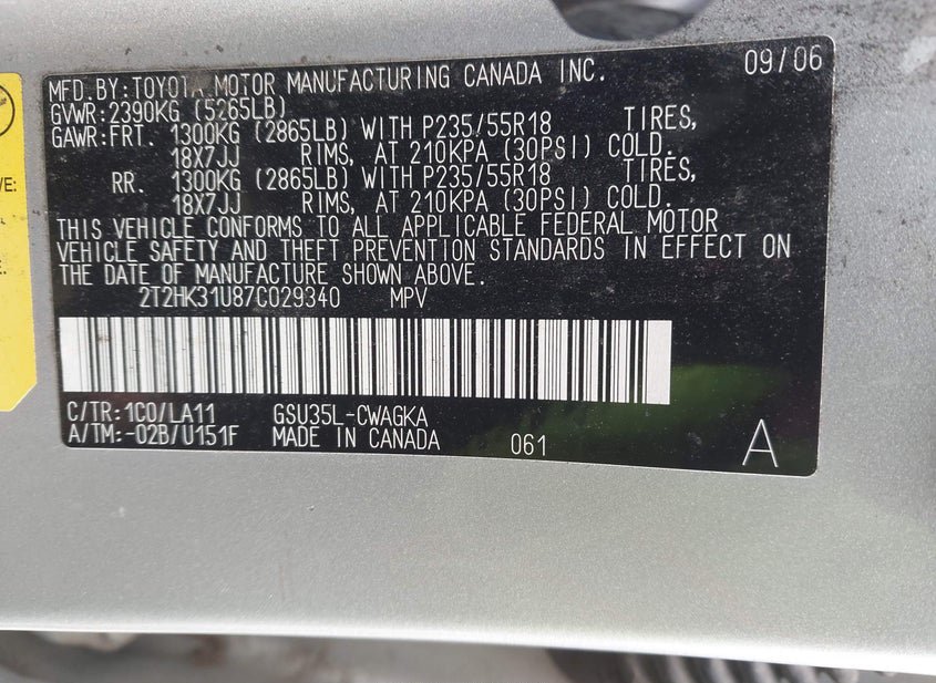 - VIN: 2T2HK31U87C029340