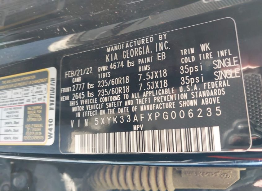 - VIN: 5XYK33AFXPG006235