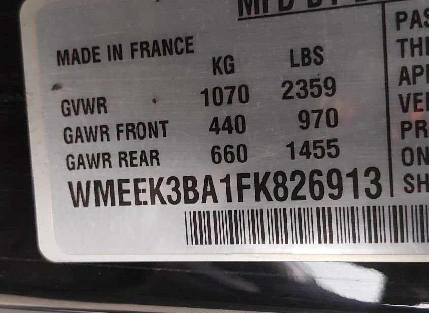 - VIN: WMEEK3BA1FK826913
