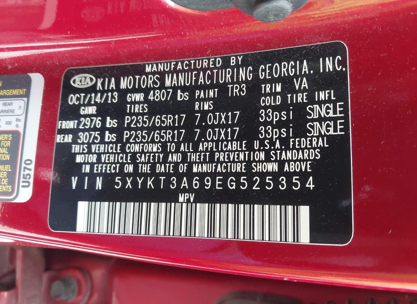 - VIN: 5XYKT3A69EG525354
