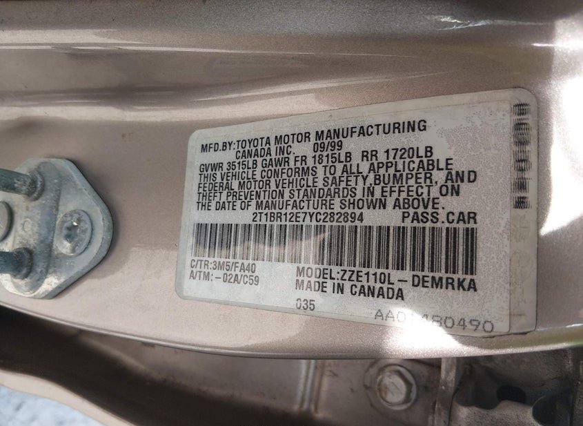 - VIN: 2T1BR12E7YC282894