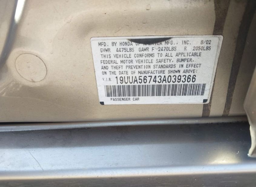 - VIN: 19UUA56743A039366