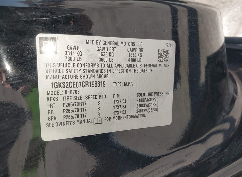 - VIN: 1GKS2CE07CR198819