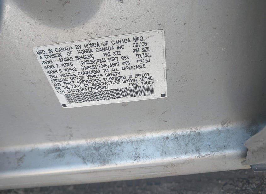 - Название лота: 2007 HONDA RIDGELINE RTS