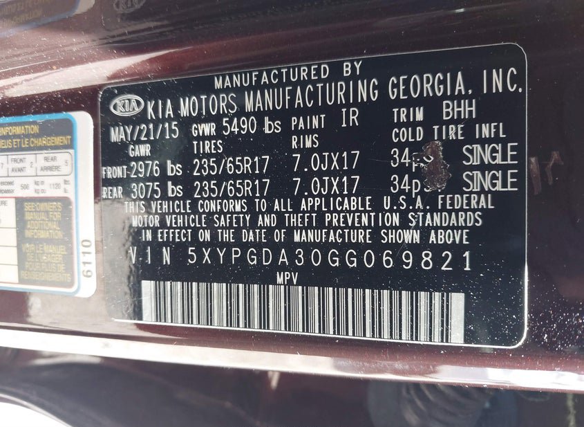 - VIN: 5XYPGDA30GG069821