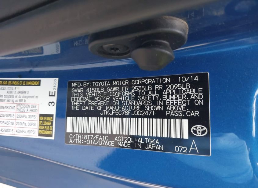 - VIN: JTKJF5C78FJ002471