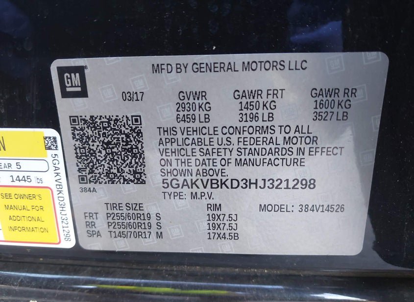 - VIN: 5GAKVBKD3HJ321298