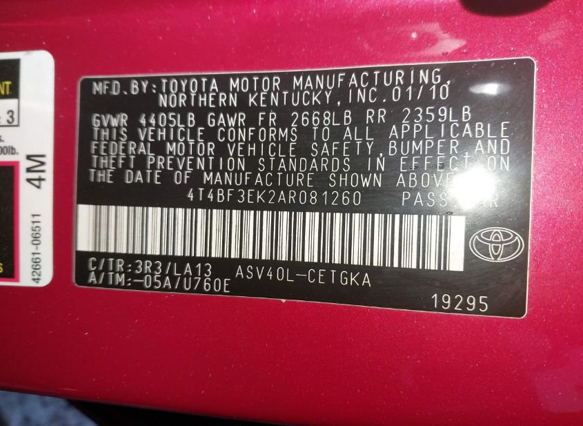 - VIN: 4T4BF3EK2AR081260