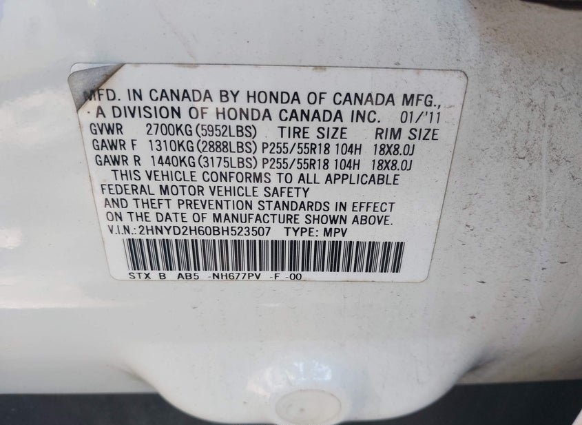 - VIN: 2HNYD2H60BH523507