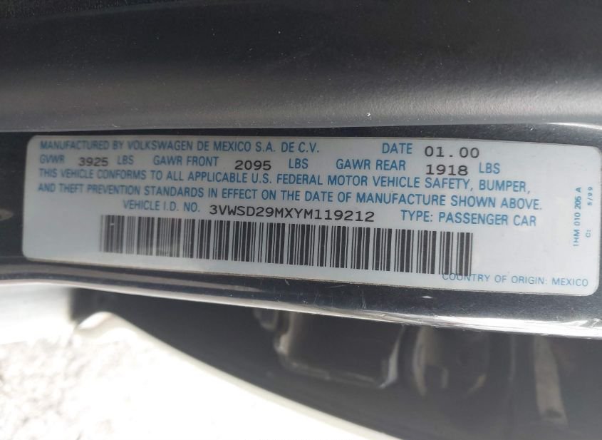 - VIN: 3VWSD29MXYM119212