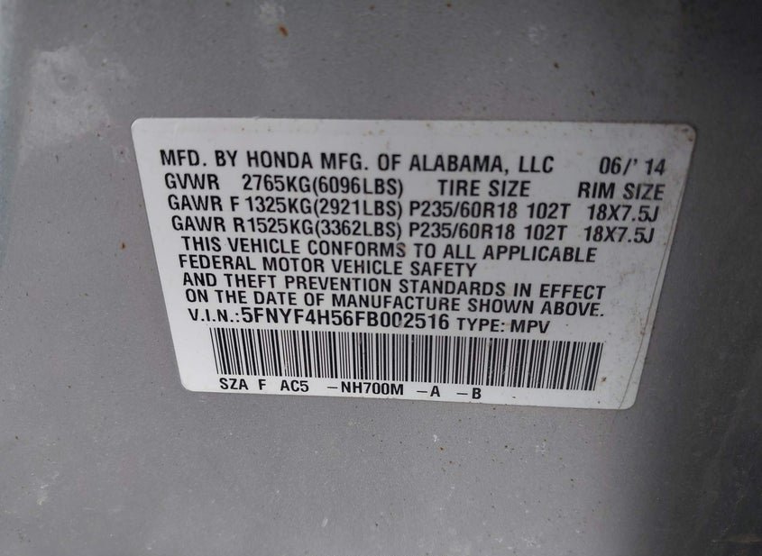 - VIN: 5FNYF4H56FB002516