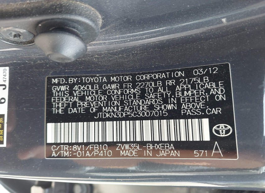 - VIN: JTDKN3DP5C3007015
