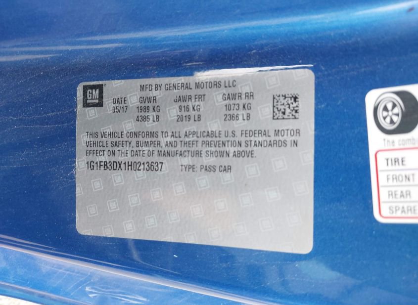 - VIN: 1G1FB3DX1H0213637