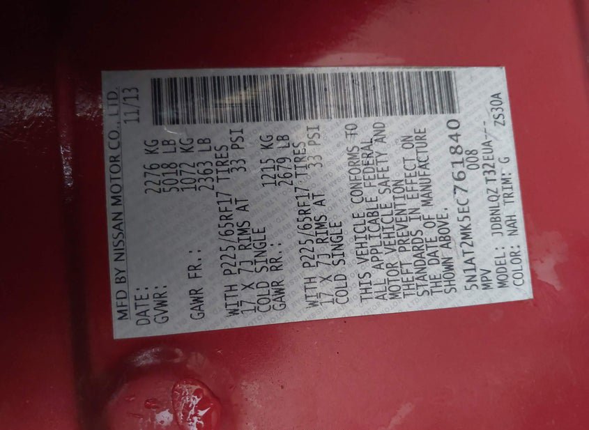 - VIN: 5N1AT2MK5EC761840