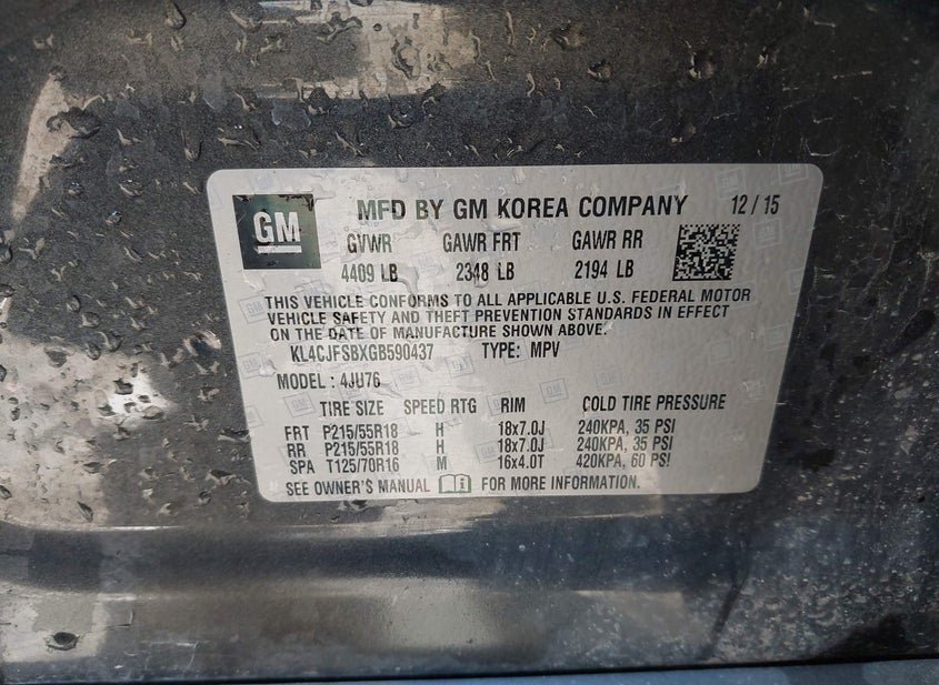 - VIN: KL4CJFSBXGB590437