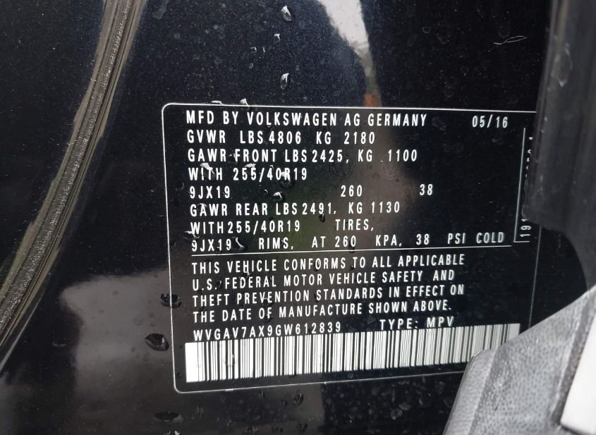 - VIN: WVGAV7AX9GW612839