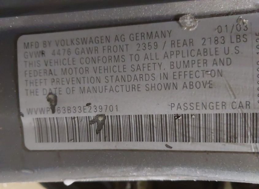 - Название лота: 2003 VOLKSWAGEN PASSAT GLS